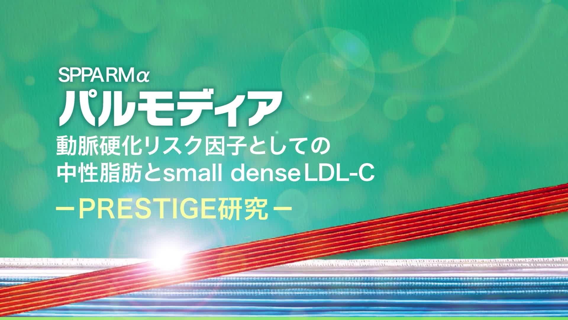 small dense LDL-C を含む動脈硬化惹起性リポ蛋白との関連を踏まえた中性脂肪管理の重要性と、パルモディア錠(即放性製剤)の無作為化比較試験「PRESTIGE研究」の結果をご紹介します。